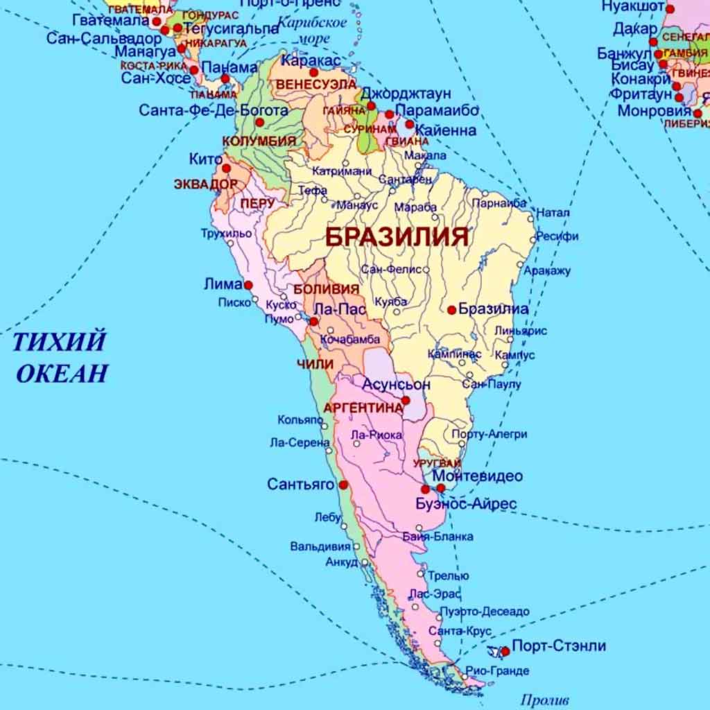 Бо́льшая часть бассейна Амазонки принадлежит Бразилии, юго-западные и западные районы — Боливии, Перу, Эквадору и Колумбии . Протекая большей частью по Амазонской низменности в субширотном направлении близ экватора, Амазонка впадает в Атлантический океанобразуя самую большую в мире дельту площадью свыше 100 тыс. км² и включающую самый большой в мире речной остров маражо ).Амазонку питают многочисленные притоки; около 20 из них длиной более 1500 км