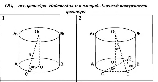 1) Угол ОО1С=90градусов, т.к. ОО1-перпендикуляр=> треугольник ОО1С прямоугольный=>угол О1СО+уголО1ОС=90градусов, угол О1ОС=90градусов-уголО1СО=90-60=30градусов, а сторона, лежащая против угла в 30 градусов равна половине гипотенузы=> О1С=CO1/2=8/2=4=R. По теореме Пифагора СО^2=OO1^2+O1C^2, OO1=корень из(CO^2-O1C^2)=корень из(8^2-4^2)=корень из(64-16)=корень из48=4корень3=h