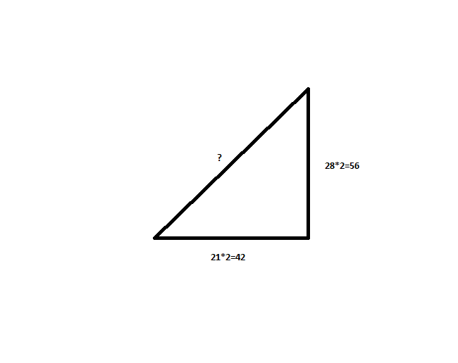 два парохода вышли из порта, следуя один на север, другой на запад. скорости их соответственно равны 28км/ч и 21 км/ч. какое расстояние ( в километрах) будет между ними через 2 часа?