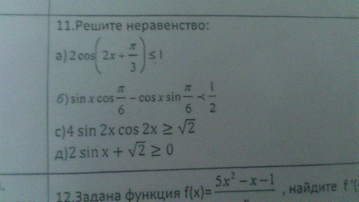 π/3-π/3+2πт≤2х≤5π/3-π/3+2πт