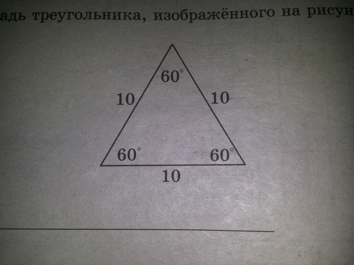 площадь треугольника 1/2 *bh*ab. bh-высота , ab-сторона треугольника . проведи высоту .и найди высоту через теорему Пифагора . 10^2-5^2=75. извлекая из квадратного корня 75 получается 5 корней из 3. подставляем в формулу . 1/2*10*5 корней из 3 =25 корней из 3 или при образовать получиться 1875 .