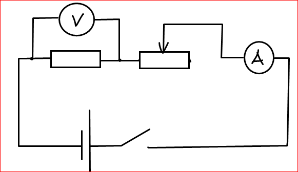 Начертите схему! Срочно нужно! Скоро экзамены, а я не знаю как эту схему чертить!Схема электрической цепи, состоящей из вольтметра, амперметра, реостата, ключа, источника тока.