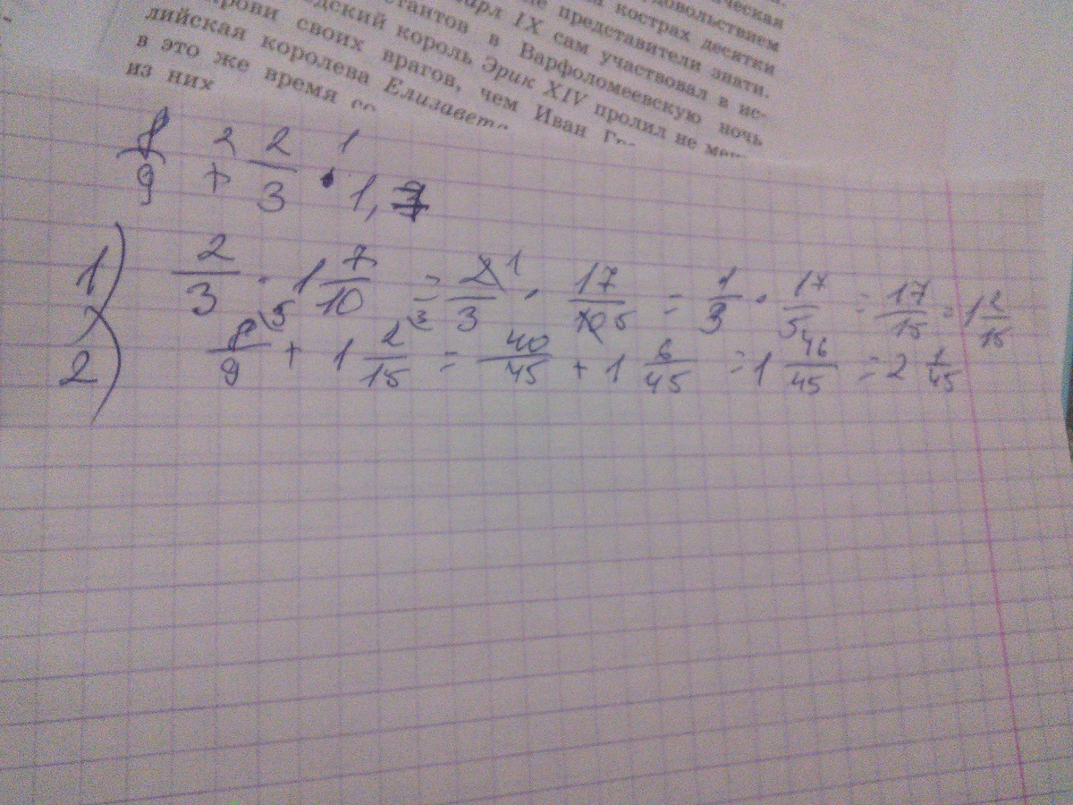 8/9 + 2/3 * 17/10 = 8/9 + 17/15 = (40+51)/45= 81/45= 9/5 = 1,8