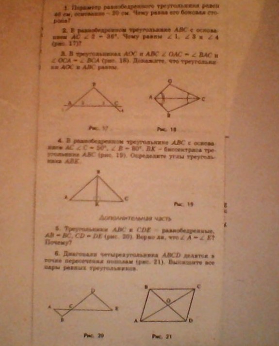 2. В равнобедренном треугольнике ABC с основанием AC <1, <3 и <4(рис 17)
