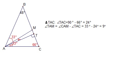 Использовано свойство углов при основании равнобедренного треугольника, сумма углов треугольника