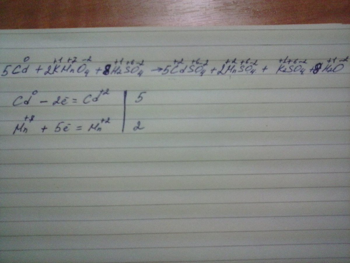 Cd + KMnO4 + H2SO4 → CdSO4 + MnSO4 + K2SO4 + H2O.
