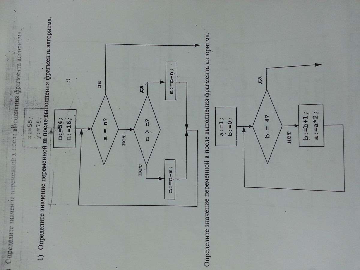 m=n? Нет ⇒ m>n? Да ⇒ m:=m-n (54-16=38)