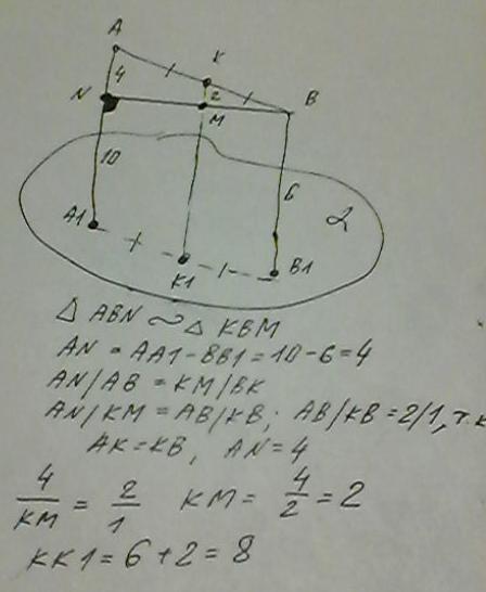 Отложив на АА1отрезок равный ВВ1 рассмотрим подобные треугольники АВN и