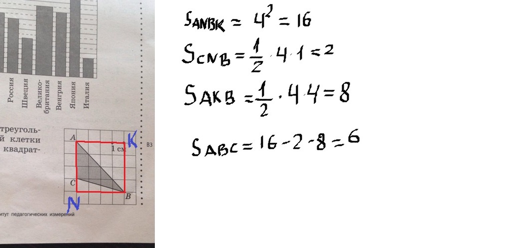 1. Для начала: достроим данный Δ до правильной фигуры, в данном случае у нас получился квадрат, площадь которого равна 4² = 16;
