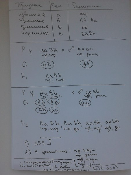 3)1 особь гетерозиготна по двум парам признаков-АаВb(25%)