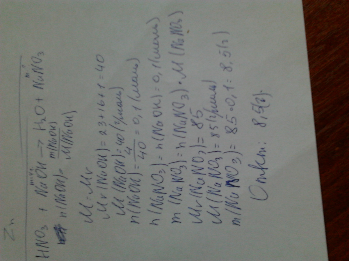 сколько граммов соли образуется при взаимодействии 4г. гидроксида натрия с азотной кислотой ... Нужно написать так что бы училка не спалила что я с инета сдула...