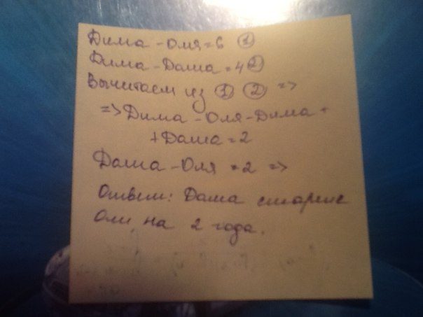 10-6=4(Дима старше Оли)