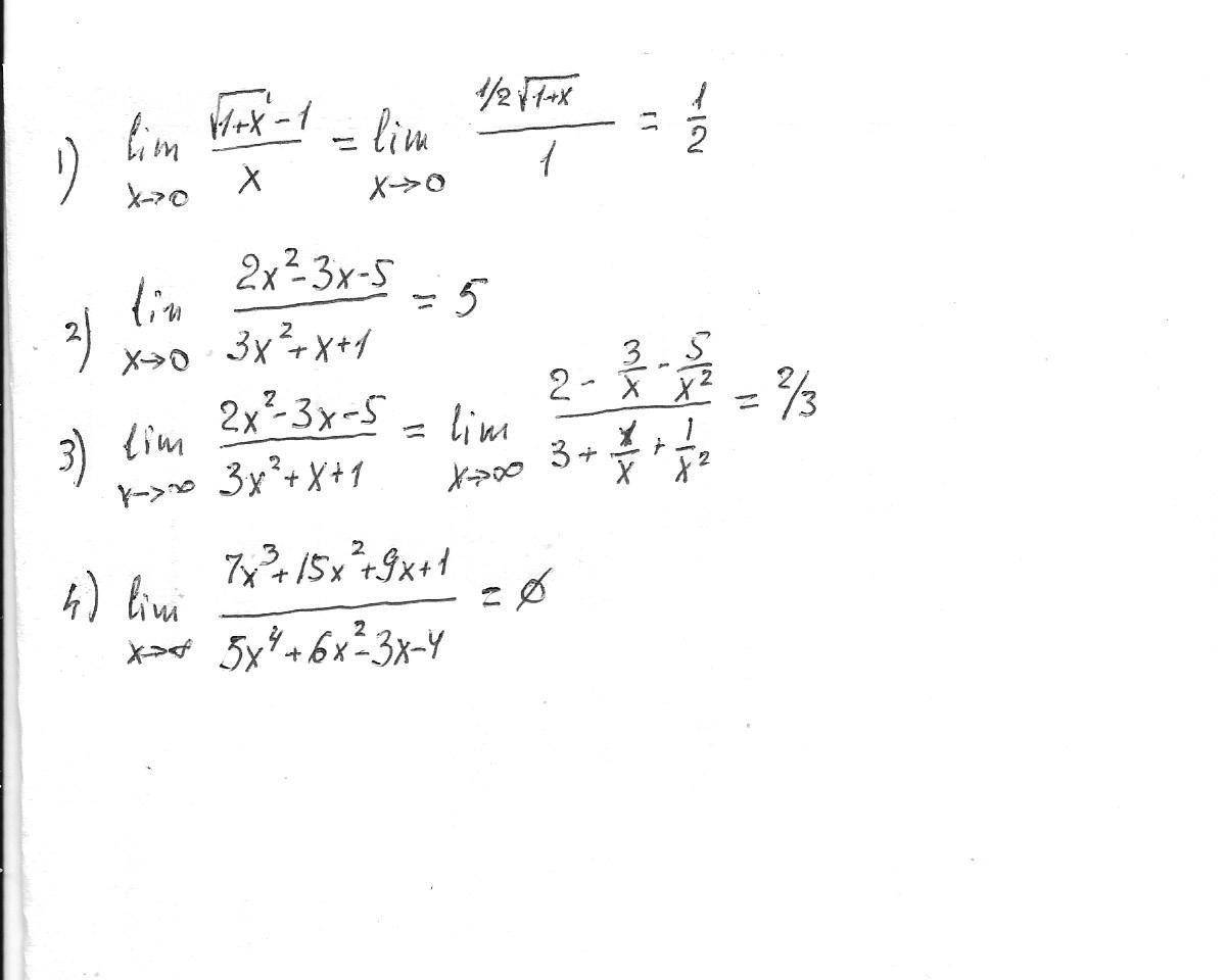 4. Lim(7x³+15x²+9x+1)÷(5x^4+6x²-3x-4)=∞÷∞=(*)