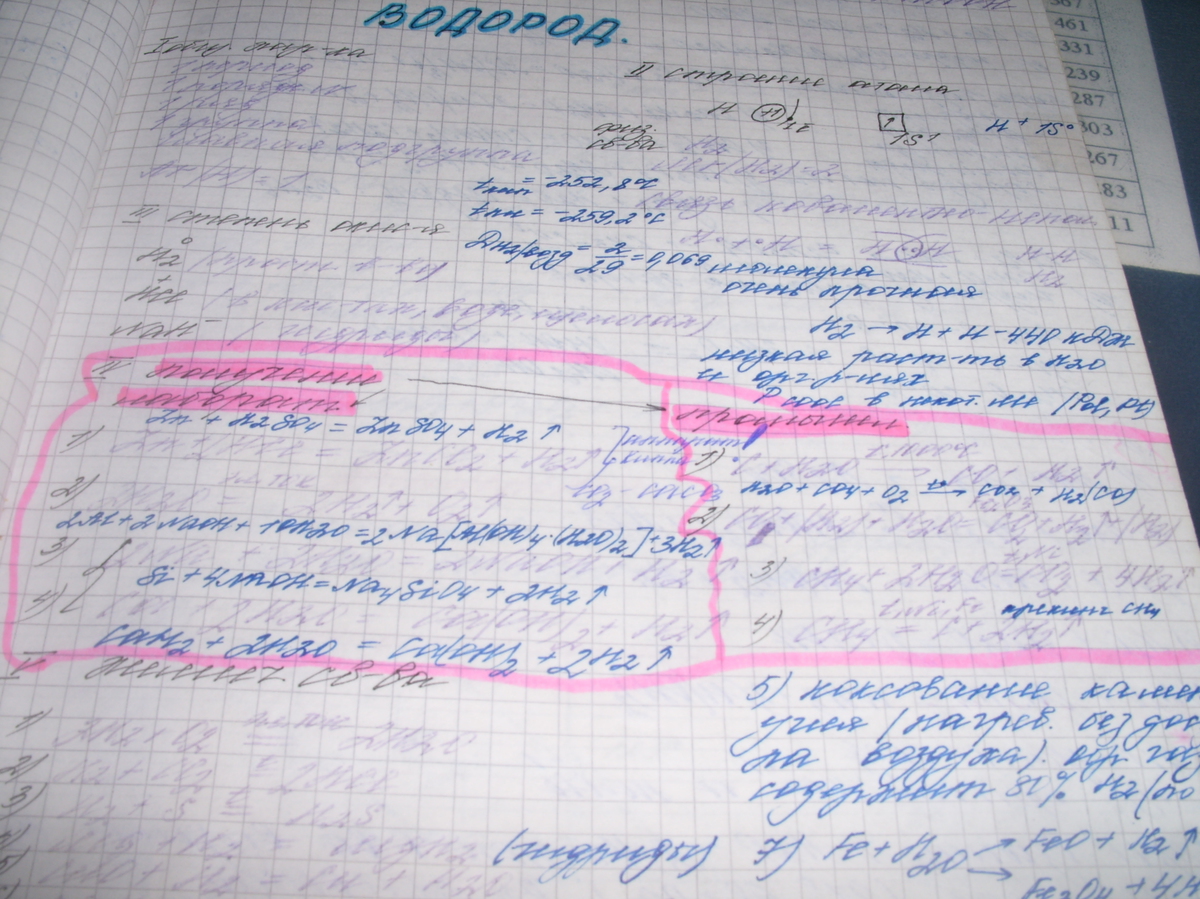 Способы получения водорода на фото, надеюсь, разберетесь, обвела то, что нужно розовым маркером. Удачи!!!