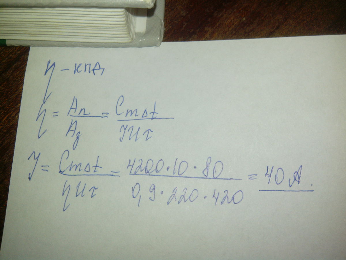 Электрический нагреватель за 7 минут доводит до кипения 10 кг воды, начальная температура которой равна 20 градусов цельсия. Какова сила тока в его нагревательном элементе, если напряжение в сети 220 В? КПД нагревателя 90%.