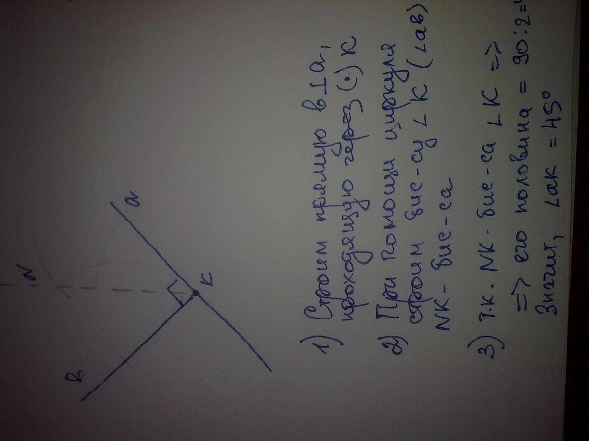 Измерьте транспортиром <ak, он равен половине прямого угла, т.е. 45 градусов.