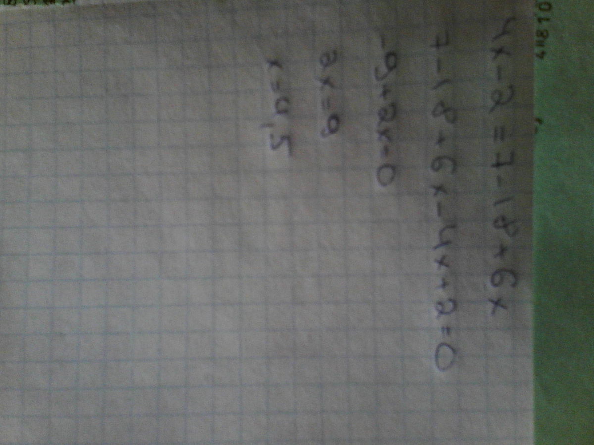 4х-2=7-6(3-х)4х-2=7-18+6х4х-6х=7-18+2-2х=-9х=-9:(-2)х=4,5