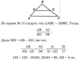В треугольнике АВС проведем отрезок ДЕ,ДЕ параллельноАС,Д обратная сязь(тоесть обратная буква Э),Е обратная связь ВС.Найдите АД-?Если АВ=16см,АС-20см,ДЕ=15см