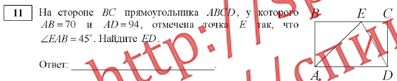 В прямоугольнике все углы равны 90 градусов. Угол ВЕА=90-45=45 градусов. С-но треугольник АВЕ равнобедренный (по свойству). АВ=ВЕ=70, значит ЕС=94-70=24
