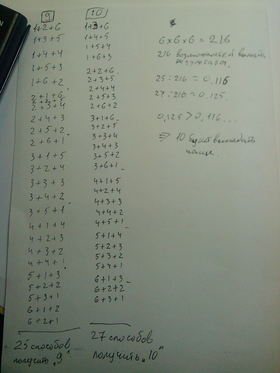 игральных кубика, подсчитывается сумма очков на верхних гранях. Что