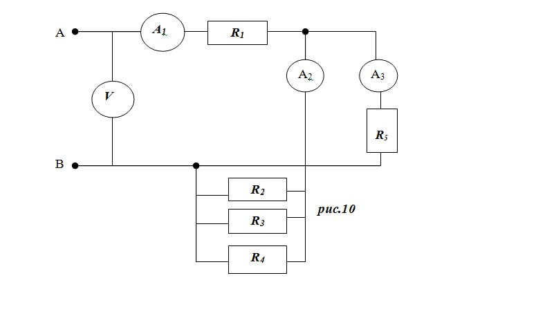 (рис. 10) Напряжение в сети 12В, показание амперметра 0,8 А. Определить