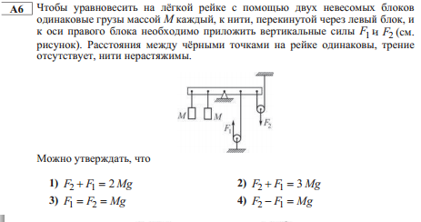 Молюю помогитеее! Чтобы уравновесить на лёгкой рейке с помощью двух невесомых блоков