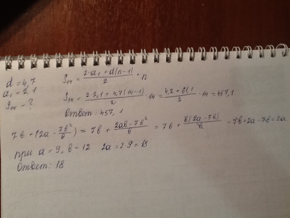 2. найдите значение выражения 7b +(2a-7b^2/b) при а=9, в=12