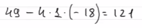 49-4*1*(-18)=121 \  \ 49-(4*(-18)=49-(-72)=49+72=121