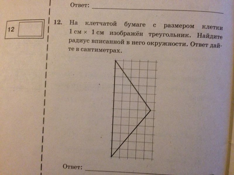 на клетчатой бумаге с клетками размером 1см 1см изображен треугольник.найти радиус вписанной в него окружности