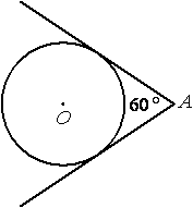 Из точки А проведены две касательные к окружности с центром в точке О. Найдите радиус окружности, если угол между касательными равен 60°, а расстояние от точки А до точки О равно 6.