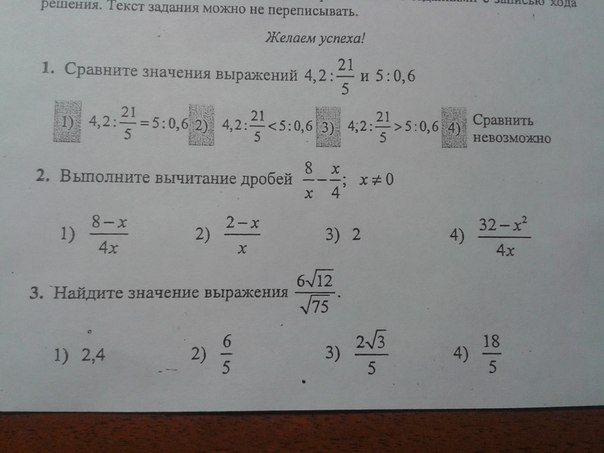 6.49у²+9у-42у=49у²-42у+9=(7у-3)² у=0,5 ⇒(7*0,5-3)²=(3,5-3)²=0,5²=0,25 Ответ:0,25 2.8/х-х/4=324х-х²/4х=32-х²/4х Ответ:4