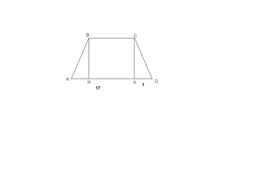 Высота равнобедренной трапеции проведенная из вершины С, делит основание AD на отрезки длиной 1 и 17. Найти длину основания BC.