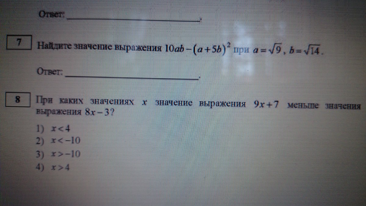 10ab-(a+5b)^2=10ab-a^2-10ab+25b^2=a^2+25b^2, при а=корень из 9, b= корень из 14: