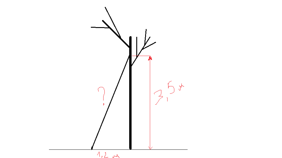 Лестница и дерево образуют прямоугольный треугольник. 3,5 - 1-ый катет, 1,2 - 2-ой, гипотенуза(х) - это и есть наша лестница. Применяем теорему Пифагора: .