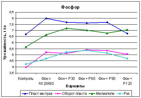 Влияние доз удобрений на урожайность на примере фосфорных удобрений на рис (сорта Южанин) за 2008-9 гг.