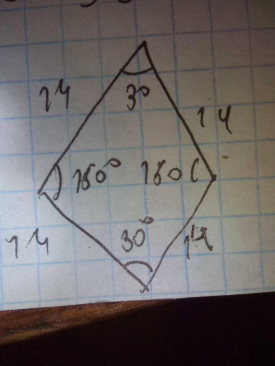 найти площадь ромба извесны стороны и углы все стороны = 14