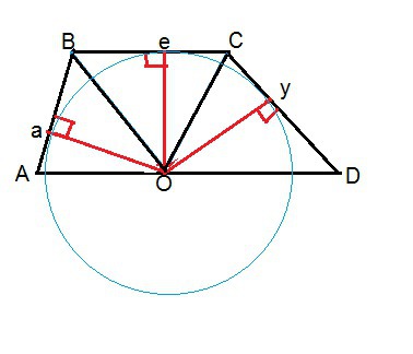 Проведем из О к указанным сторонам трапеции перпендикуляры к АВ -а, к ВС - е, к СD-у