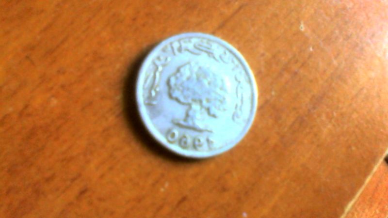 Это монета Туниса номиналом 5 миллимов, на ней изображен пробковый дуб.