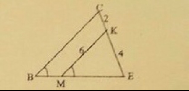 1) В треугольнике BCE угол CBE= углу KME. Используя данные указанные на рисунке , найдите BC.