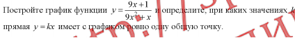 следовательно при х=1/9 у=9, прямая у=кх пересекает гиперболу в точке (1/9;9) к=81