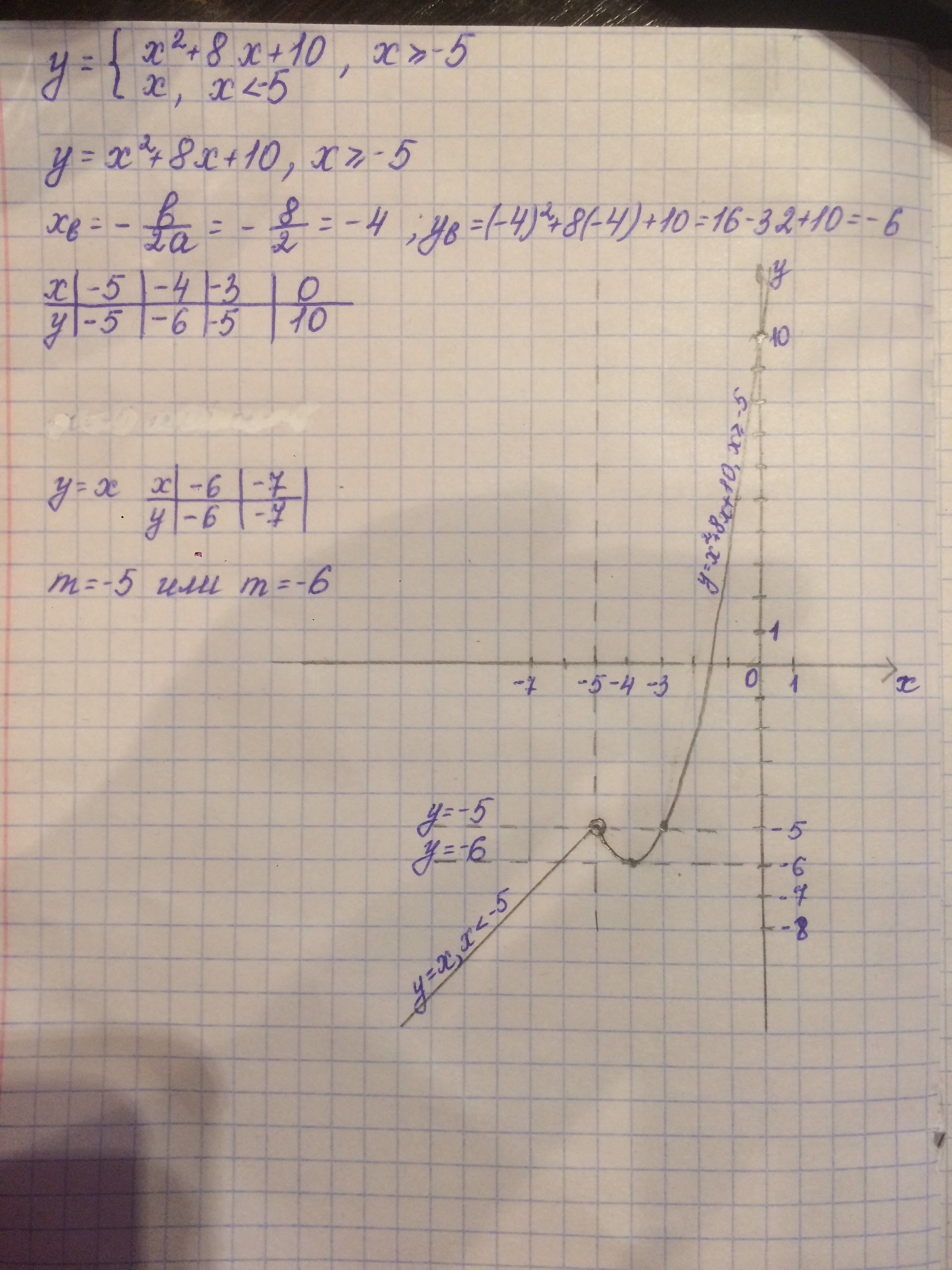 постройте график функции Y={x^2+8x+10 если x> -5