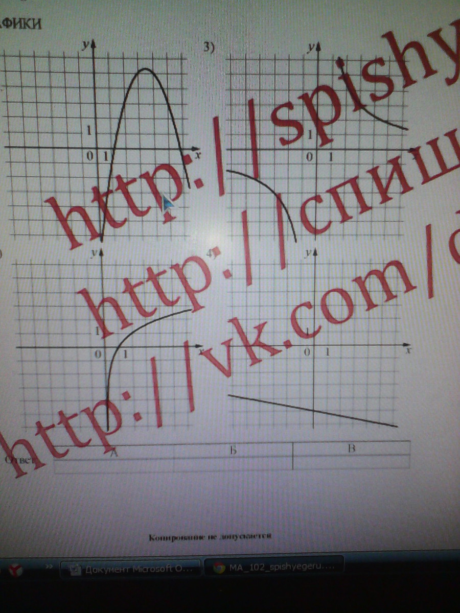 установите соответствие между функциями и их графиками А)y=-1/5x-5.Б)y=-x^2+7x-7x.В)y=9/x