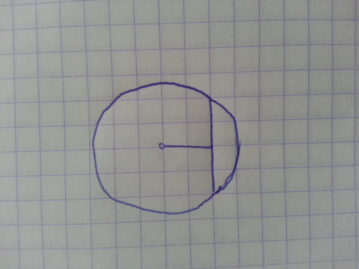 1)соедини центр и точку начала хорды, получится прямоугольный треугольник
