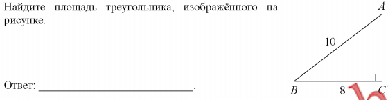 100-64=36 v36=6 отсюда s=1/2ab=1/2*6*8=24