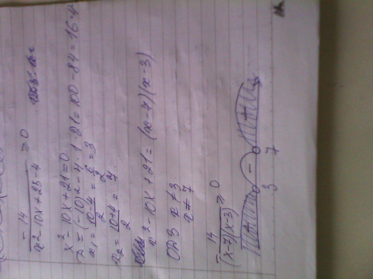 Берешь и раскрываешь скобки,получается квадратное уравнение,корни которого 3 и 7.Далле работаешьс интервалами.А вот тут я не смог дальше сделать