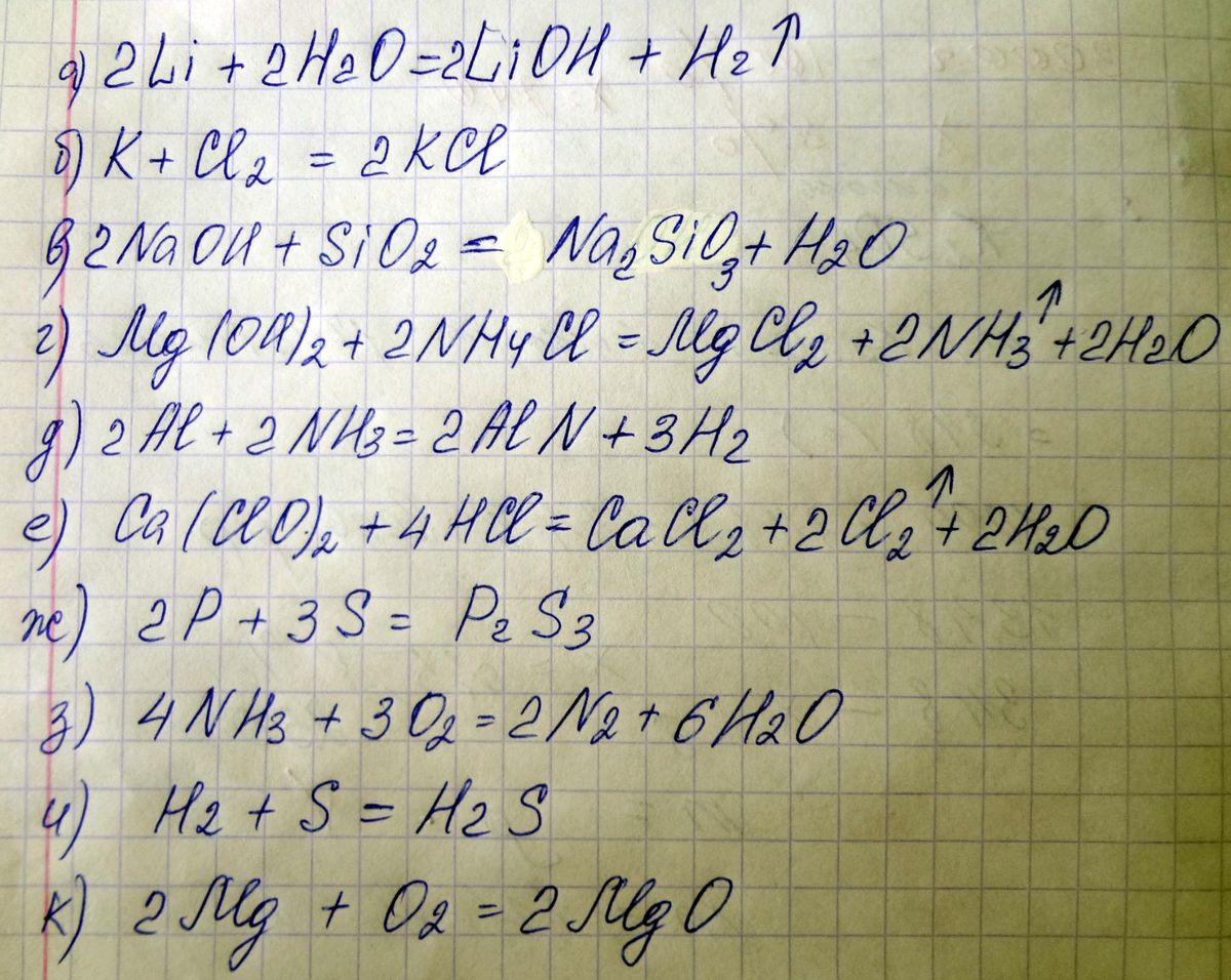 Продолжите и уровняйте 1) NaOH + SiO2 2)Mg(oh)дважды + NH4cl 3) al+nh3 4) nh3+o2 5) h2 + s 6) mg + o2
