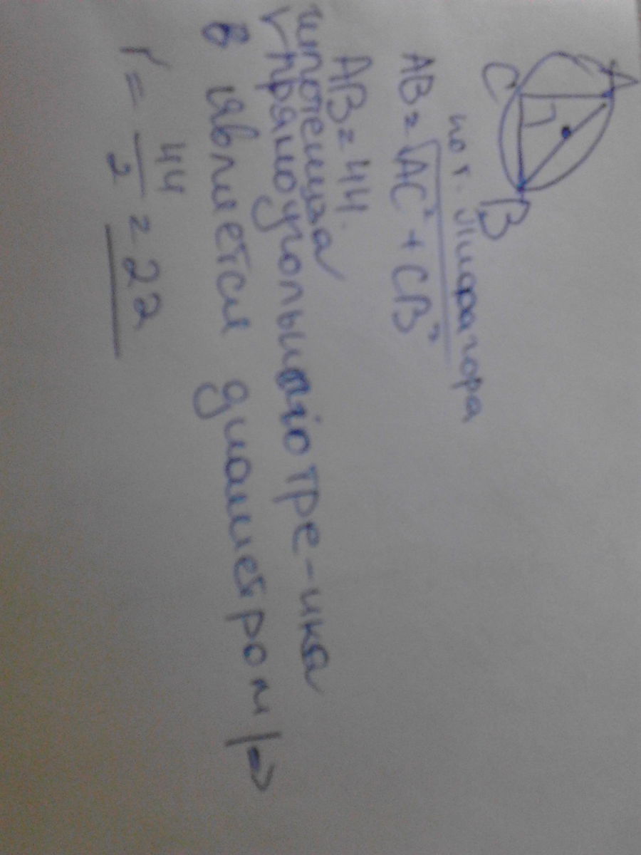 1. В треугольнике BC AC=39 , BC √415 , угол С = 90. Найдите радиус описанной окружности этого тр-ка.