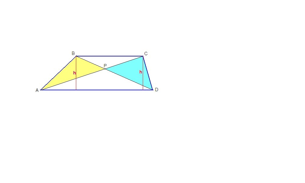 В трапеции ABCD с основаниями AD и ВС диагонали пересекаются в точке Р .докажите что площади треугольников АРВ и CPD равны