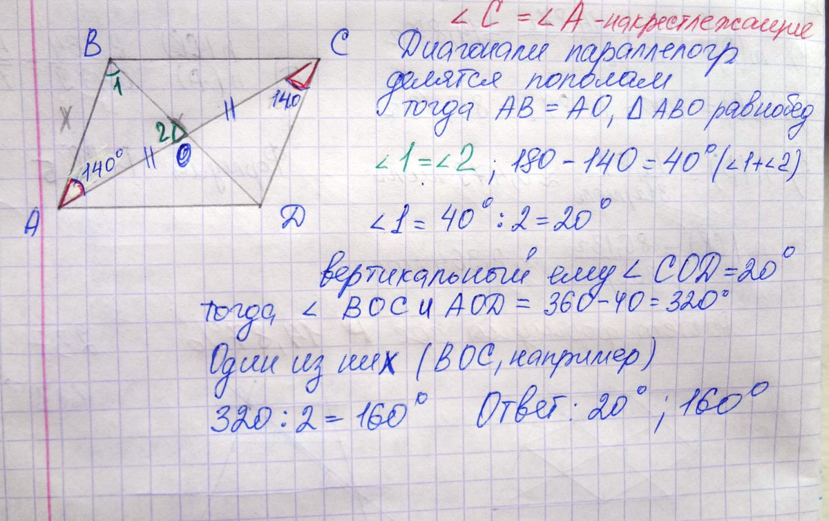 2)В параллелограмме ABCD диагональ AC в 2 раза больше стороны AB и ∠ACD=1∘. Найдите угол между диагоналями параллелограмма. Ответ дайте в градусах.