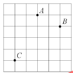 на клетчатой бумаге с размером клеткина клетчатой бумаге с размером клетки 1 см х 1 см отмечены точки а,в,с.найдите расстояние от точки а до середины отрезка вс.ответ выразите в сантиметрах